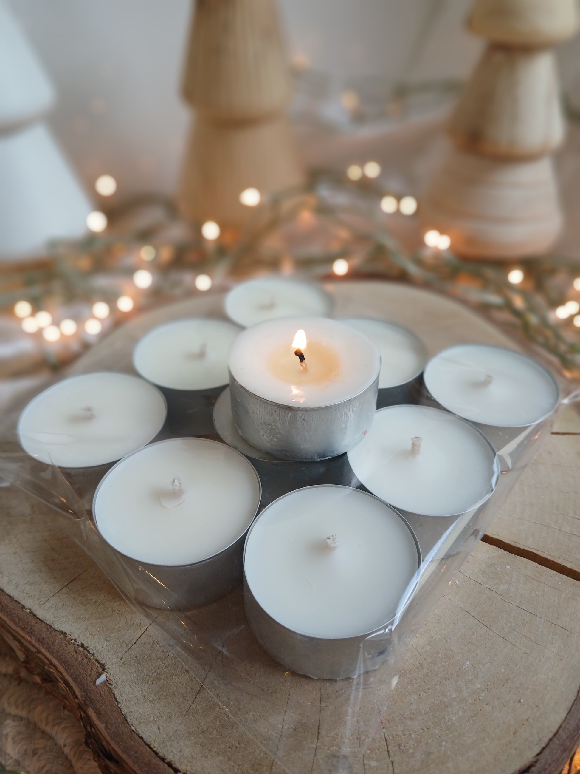 Our tea lights are made with 100% natural soy wax, a cleaner and eco-friendly alternative to traditional paraffin candles.