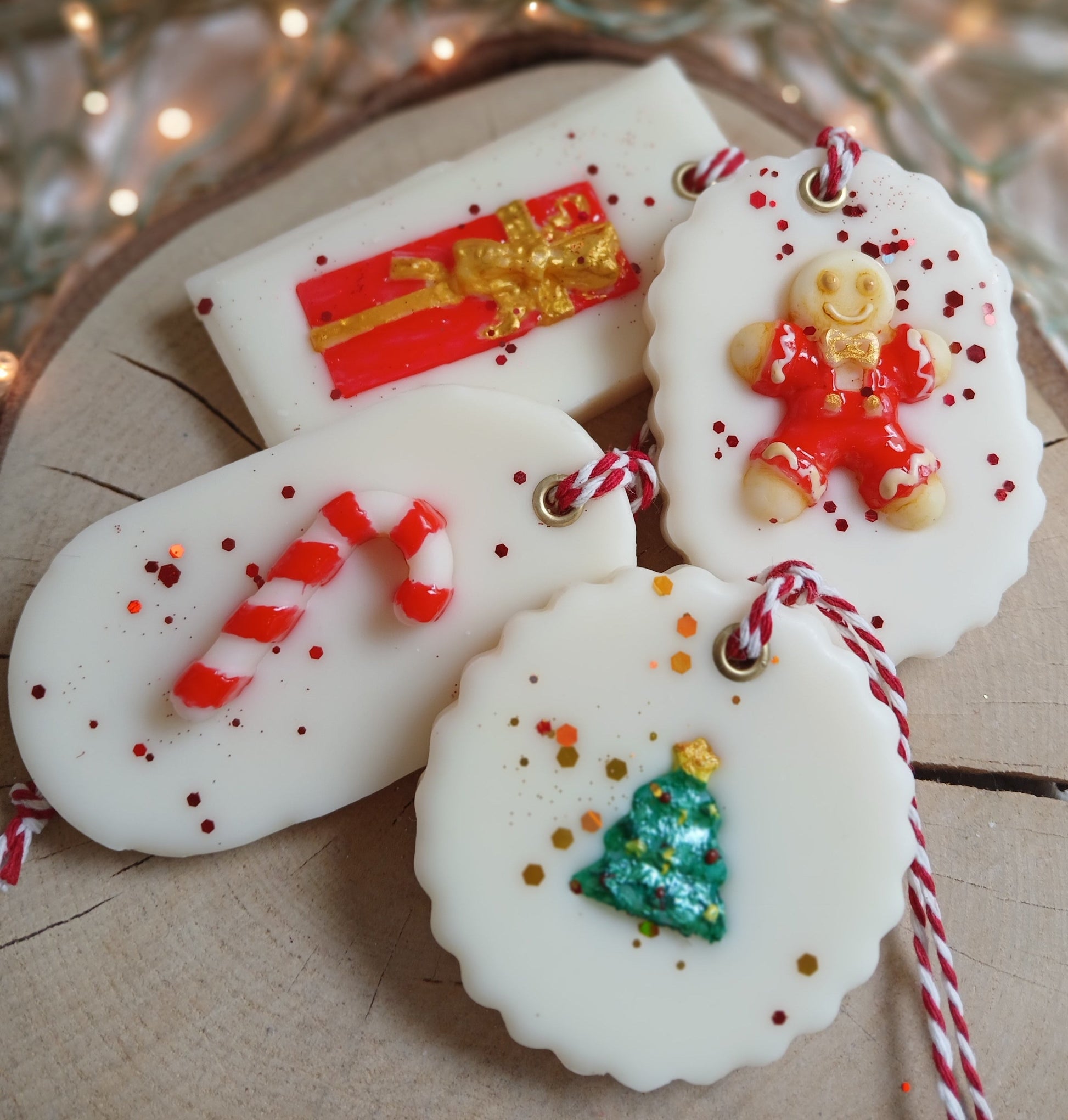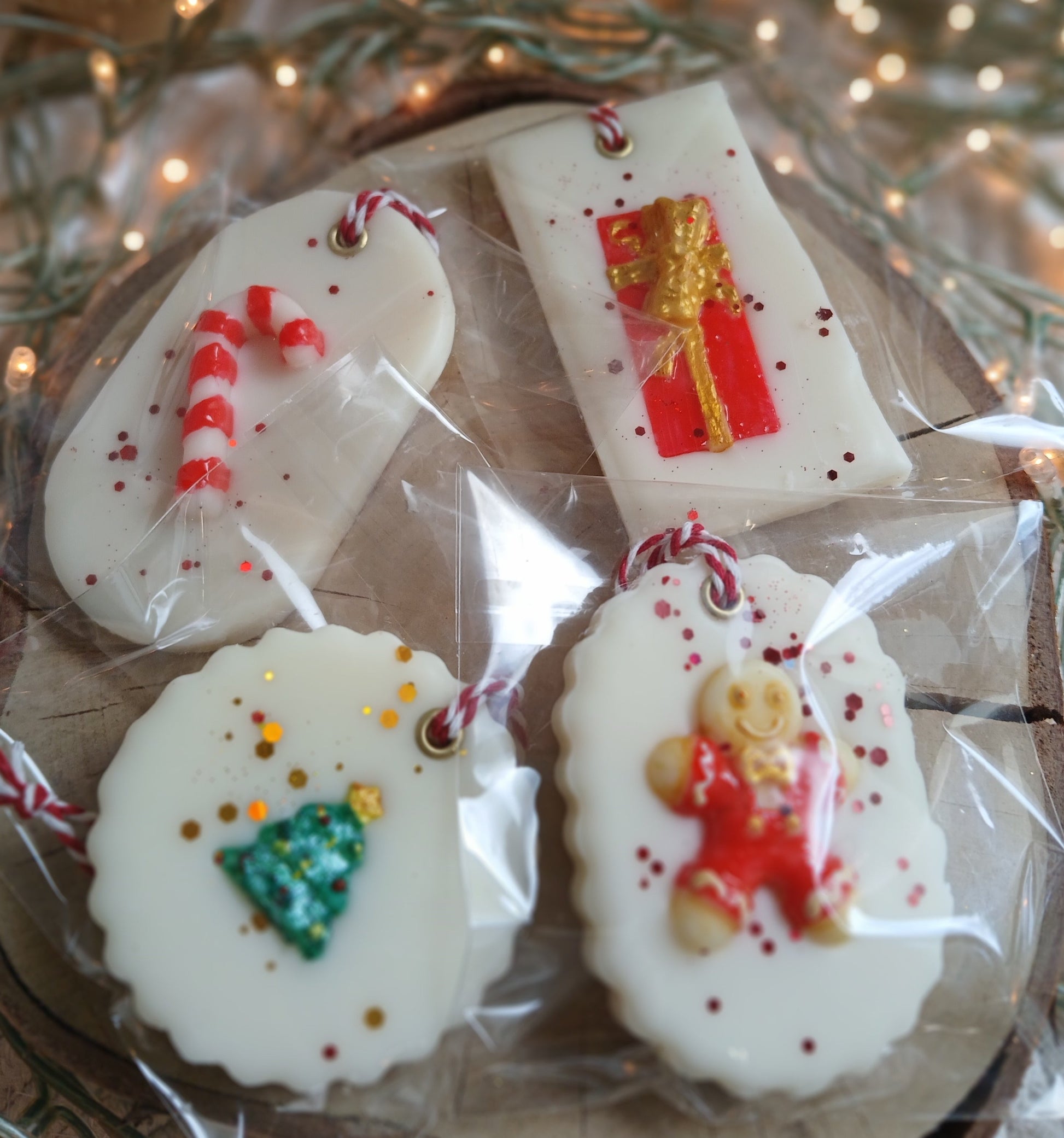 Handmade wax sachets infused with festive fragrance and decorated with wax elements. Perfect for scenting drawers, closets or as a decorative accent.